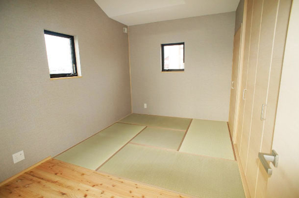 フローリングのリビングに対し、寝転がってくつろぐこともできる、畳の間を隣接してつくりました。襖を閉め切ると個室としても使え、開け放てばリビングと一体。生活シーンに応じて自由に使い分けられる設計です。