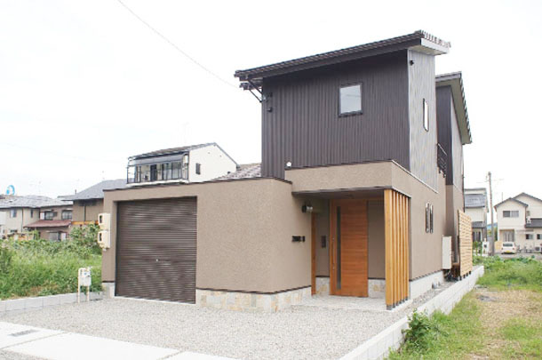 玄関横のシャッターには車庫があり、外から車が見えないよう配慮しています。建物ではなく塀にすることで、費用をかけずに、防犯とプライバシーを守ることができます。